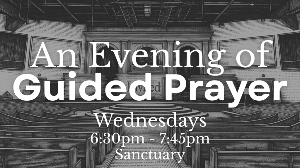 On Wednesday evenings at 6:30pm, the sanctuary will be open for you to come and enjoy a sweet time of prayer. You may pray on your own or visit several stations in the sanctuary that will guide you with prayer prompts. This is a time to step away from the rush of life and sit still in the presence of our Lord.