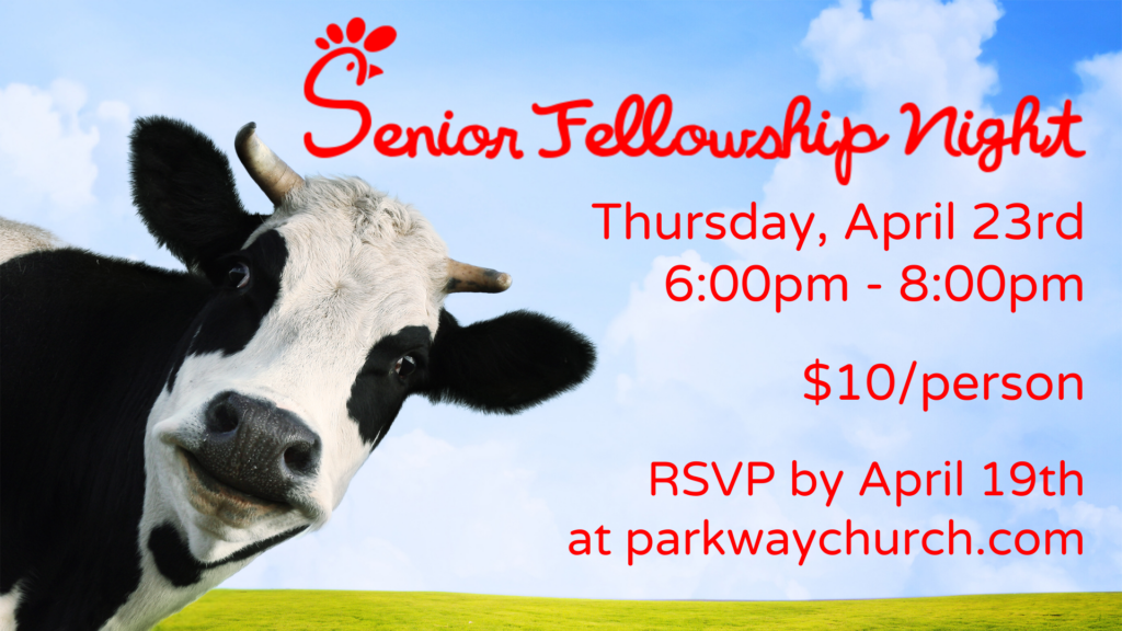 Registration is now closed for our April Senior Fellowship Night but check back here for details (available soon!) for our May event!