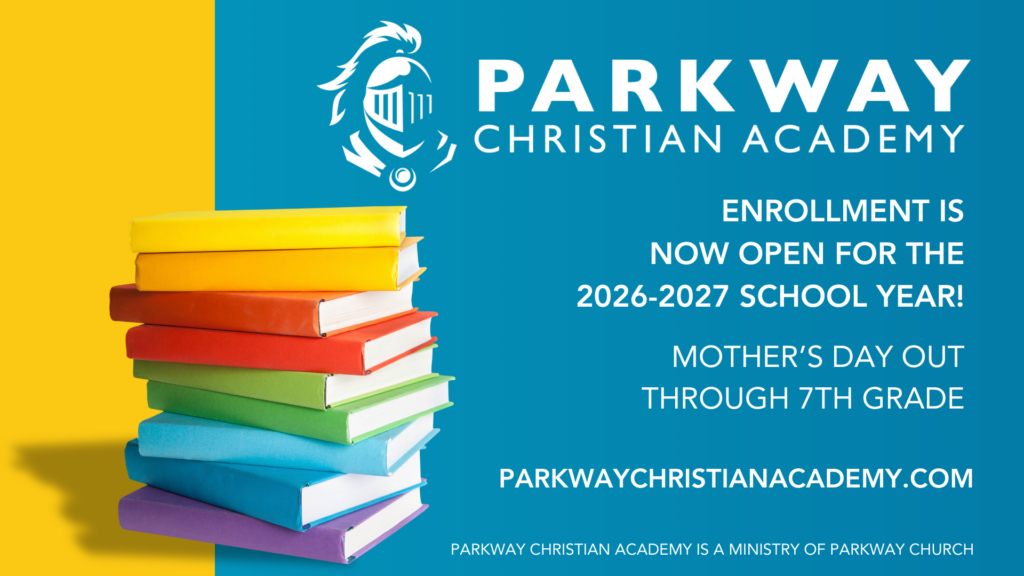 Our school ministry, Parkway Christian Academy, is dedicated to guiding children of Christian families to grow in their faith while providing a comprehensive academic program that is built upon Biblical principles. From Mother’s Day Out through 6th grade, we provide a dedicated Christian teaching staff, an academically substantive curriculum, and a nurturing classroom atmosphere for our students.